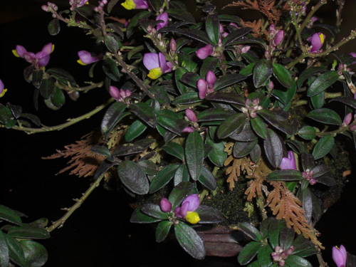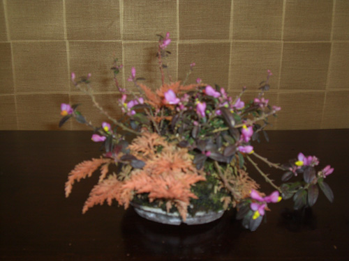 常葉姫萩と小金ジタの下草のもち込み品、紫に黄色の花が暖かさを感じさせる一品です。