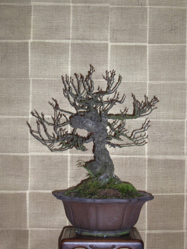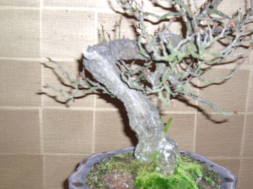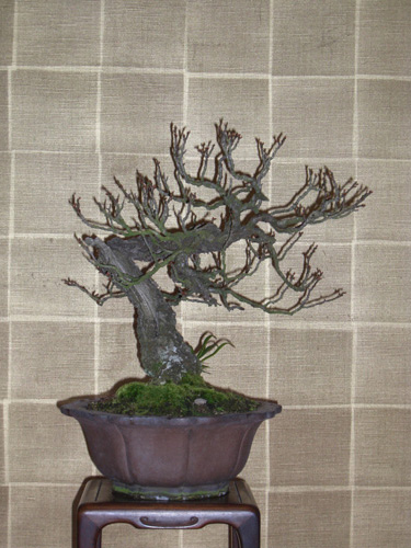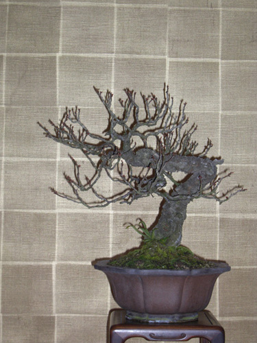 紫泥輪花鉢も時代が有り古梅を引き立てている。